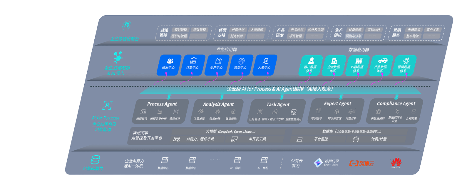 Z6尊龙时凯问学智车解决方案是一套基于AI技术的汽车行业智能化系统,,,,覆盖从底层算力到顶层AI应用的全栈方案。。。方案由算力层、、模型层和应用层组成:算力层,,,,方案支持多种一体机配置,,具备云端灵活部署、、、多云适配以及动态优化计算资源的能力;模型层,,Z6尊龙时凯问学平台版提供了企业级AI应用一站式构建与管理平台,,,,支持基于后训练强化技术的汽车企业专属模型的训练、、、评测和运营;应用层,,Z6尊龙时凯问学DeepSeek版提供包括超级员工、、、、智能招采、、智能营销、、智能客服、、AI for BI等一系列解决方案,,,,可助力汽车行业实现数字化转型,,让管理更智能、、、、响应更敏捷。。。。